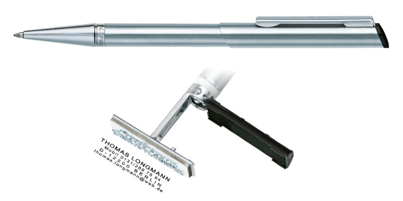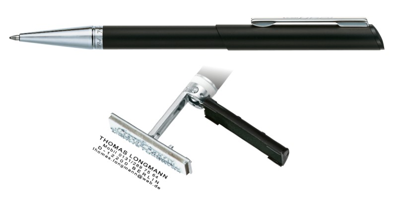 Ballpoint pen HERI Diagonal with built-in stamp for max. 3 lines of text.